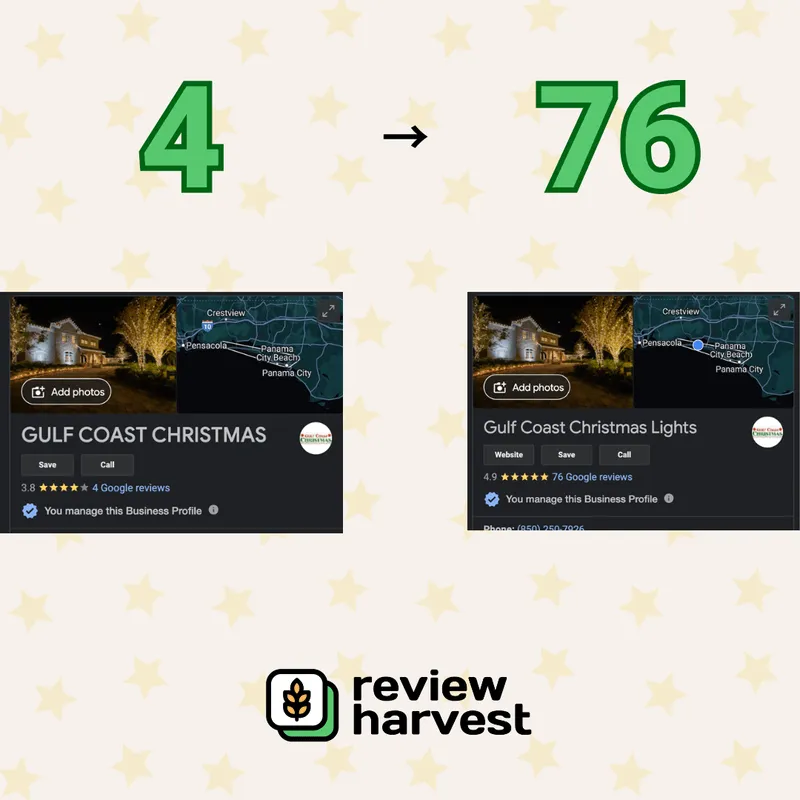 We automate the process of requesting, responding, and repurposing google reviews for your business. We send personalized images via text and email with your end customers name on it. Then we respond to each review. Finally we repurpose all the 5 star reviews into social media content we create and post for you. The best part is we integrate into your current process so you don't have to change or do a thing!